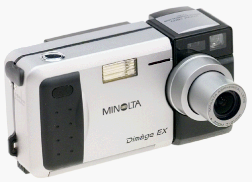 Introducing the end of digital photography as you know it. The Dimâge EX Zoom 1500. The first digital camera designed to work and perform like your 35 mm camera. Minolta's Dimâge EX Zoom 1500 is a high-quality digital camera with a detachable 3x zoom lens and high-speed, 3.5 frame-per-second shooting capability. The 1.5 million pixel CCD and primary color filter provide beautiful image quality with realistic color fidelity. The Dimâge EX Zoom 1500 also features Minolta's advanced autofocus and exposure systems, digital subject program selection, and automatic white balance, for ease of use with a wide variety of subjects.