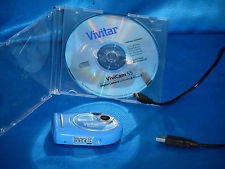 VIVITAR Vivitar Vivicam 55 3-IN-1 Digital Camera (Color comes in Blue or Silver/blue) Model: vivicam55 Vivitar Vivicam 55 3-IN-1 Digital Camera (Blue) Specifications Mfr Part Number: 60123 Features: Streamlined Styling Compact Size 640x480 Image Resolution Built-In 8MB Memory Macro Mode Auto Flash Self-Timer PC/Web Cam Mode Burst Mode (4 Images) Video Mode USB Twain for PC Includes MGI Photo Suite 4.0 SE, Photo Vista 2.02 Photo Editing Software & PC Driver Image Sensor: CMOS 350K Pixels Resolution: VGA 640 x 480, 320 x 240 (CIF) Flash: 3-Mode - Auto, on, off Viewfinder: Optical White Balance: Automatic Exposure: Automatic Internal Memory: Built-in 8MB SD RAM Image Storage: 91 Images @ 640 x 480; 367 Images @ 320 x 240 ISO: 100 File Format: JPG, AVI Self-timer: 10 seconds Interface: USB Minimum System Requirements: PC with minimum of 300 MHz Pentium, Windows 98SE & 32MB SDRAM Software: MGI Photo Suite 4.0 SE, Photo Vista 2.02 & PC Driver Power source: 2x AAA alkaline batteries; USB 5V (pc camera mode) Color: Blue or Blue/Silver Dimensions: 3.5 x 2.1 x 1 inch